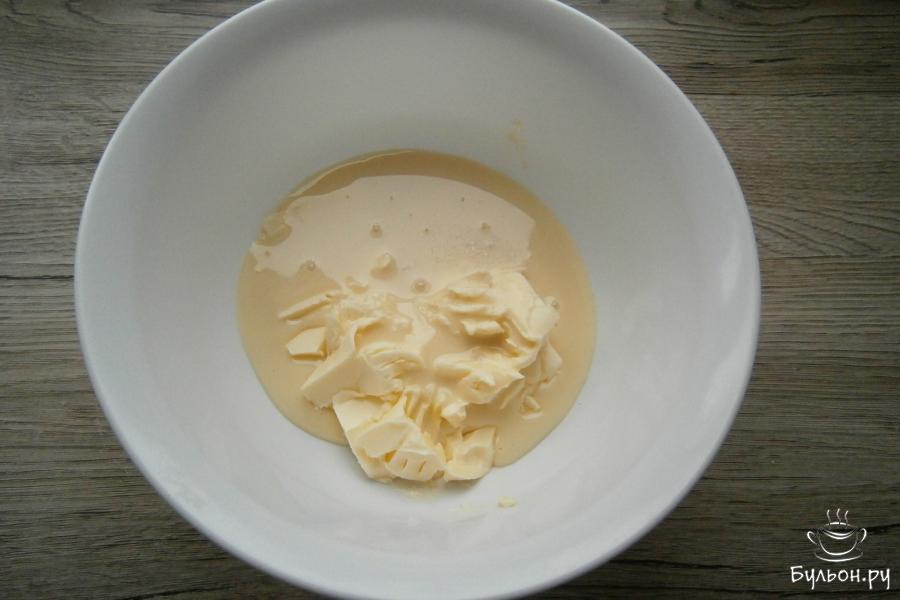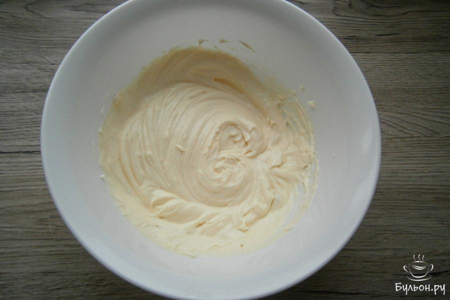 15. Сверху разместить вторую часть бисквита, смазать верх тортика и его бока кремом, выровнять. Поместить торт в холодное место на 1 час.