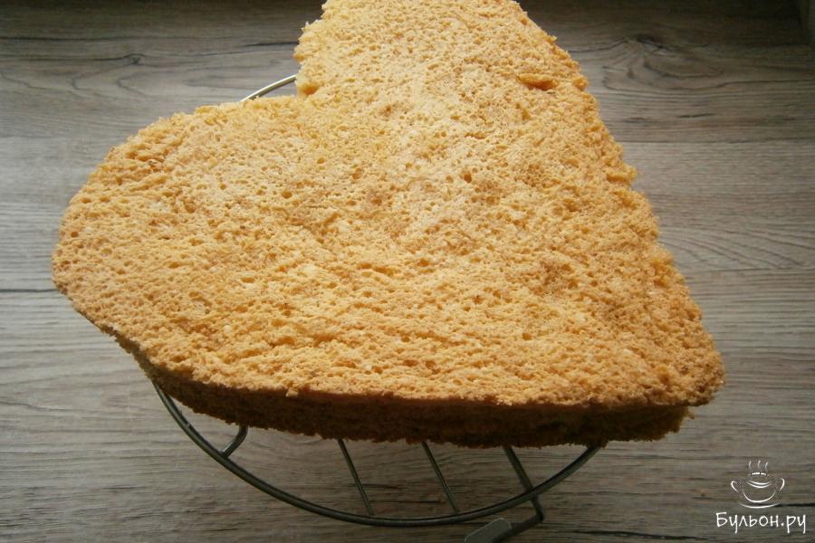 7. Печь бисквит при выставленной температуре в 180 гр. около 40 мин., после чего немного его остудить и извлечь из формы. Полностью дать бисквиту остыть на решетке.