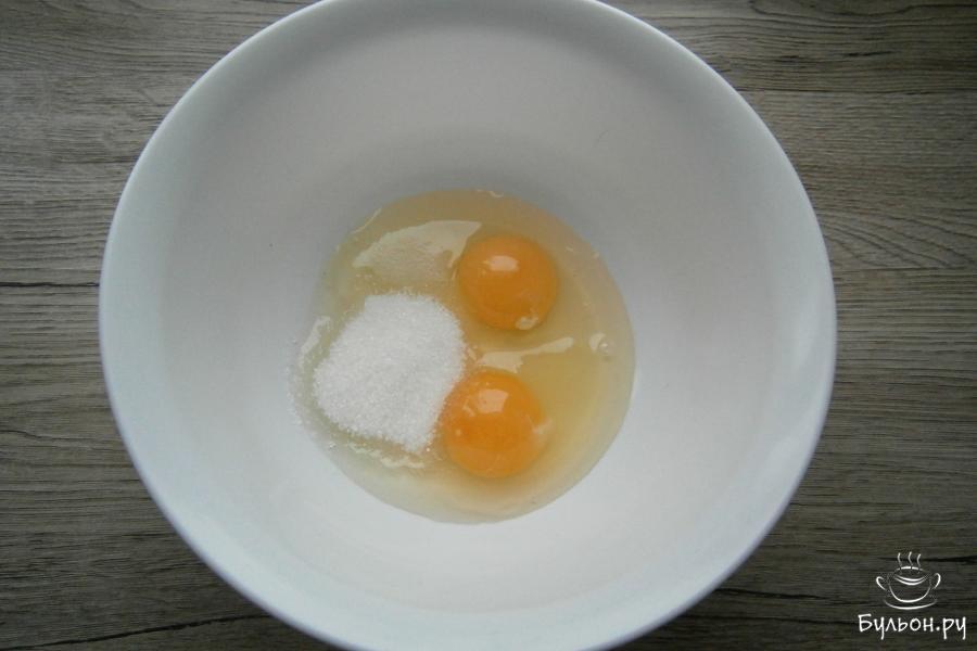 5. Приготовить крем: в кастрюльку влить 400 мл молока, всыпать 5 ст. ложек сахарного песка, добавить ванильный сахар. У трех яиц отделить желтки от белков, желтки добавить в кастрюлю.