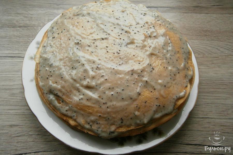 Многие из нас, а также, наши дети любят блины, они довольно часто присутствуют в нашем меню. Я хочу предложить вам рецепт тортика из блинов, приготовленного с заварным кремом и маком. Такой тортик вы можете приготовить на Масленицу или для семейного чаепития, небольшого торжества. Блинный торт готовится совершенно просто и получается очень вкусным, нежным, не приторным, мак придает ему приятную хрусткость. Попробуйте, блинный торт с добавлением мака вам обязательно понравится.