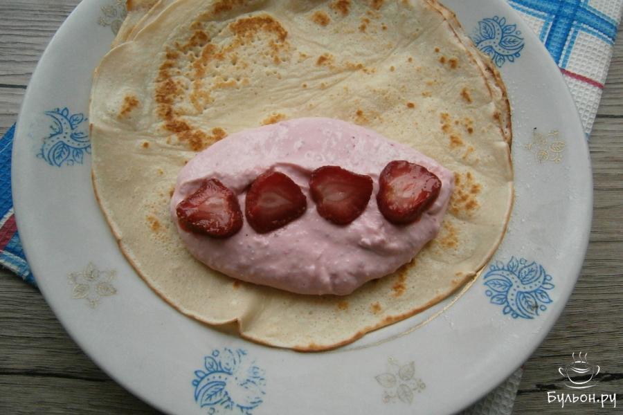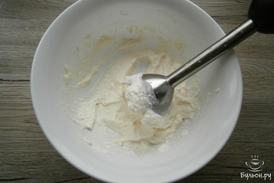 5. Для начинки: смешать погружным блендером жирный творог с 2 ст. л. хорошей сметаны и 2 ст. л. сахарного песка.