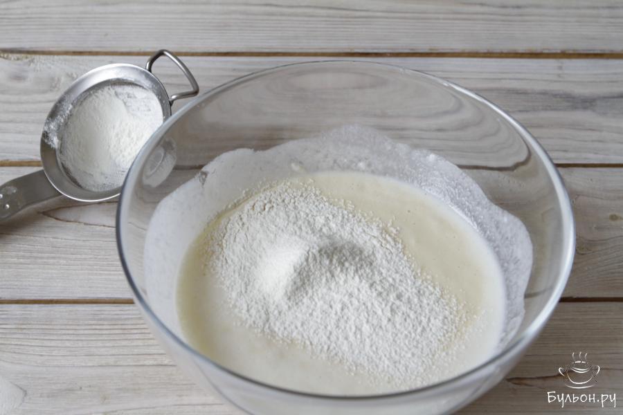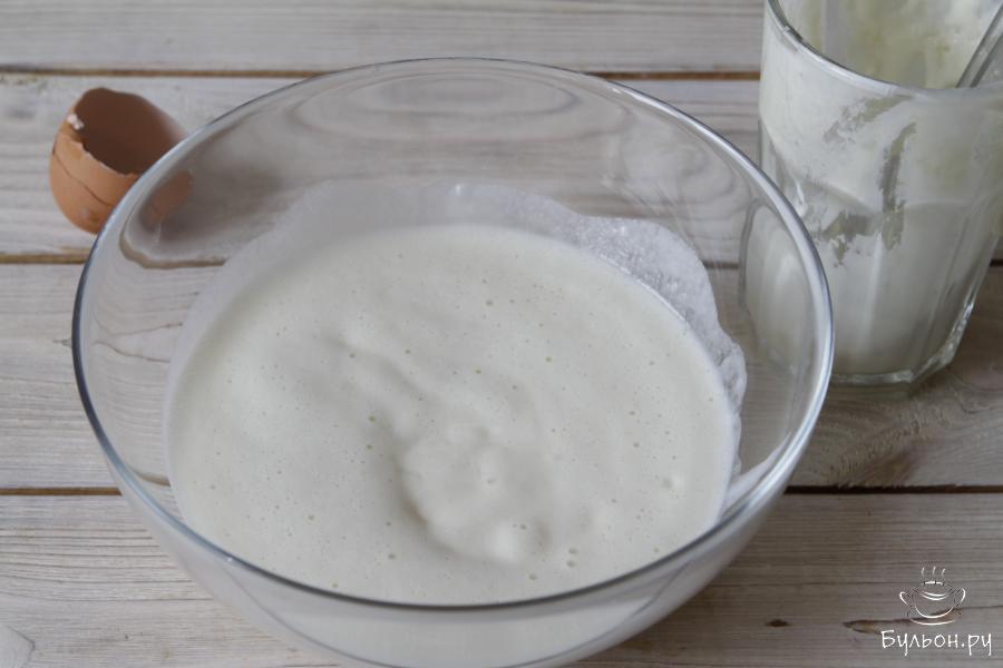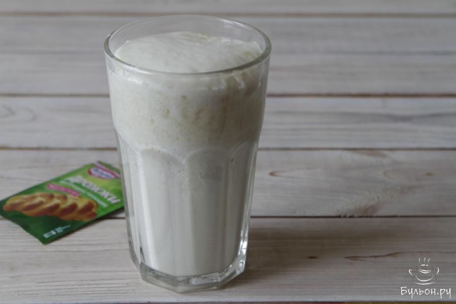 1. Приготовить опару. Подогреть молоко, добавить соль, сахар, сухие быстродействующие дрожжи и 2 ст. л. муки. Все хорошо перемешать и убрать в теплое место на 10-15 минут.