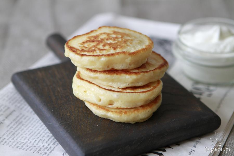 7. Подавать дрожжевые оладьи лучше всего в теплом виде. К ним можно предложить сметану, джем, мед, варенье. Приятного Вам аппетита.
