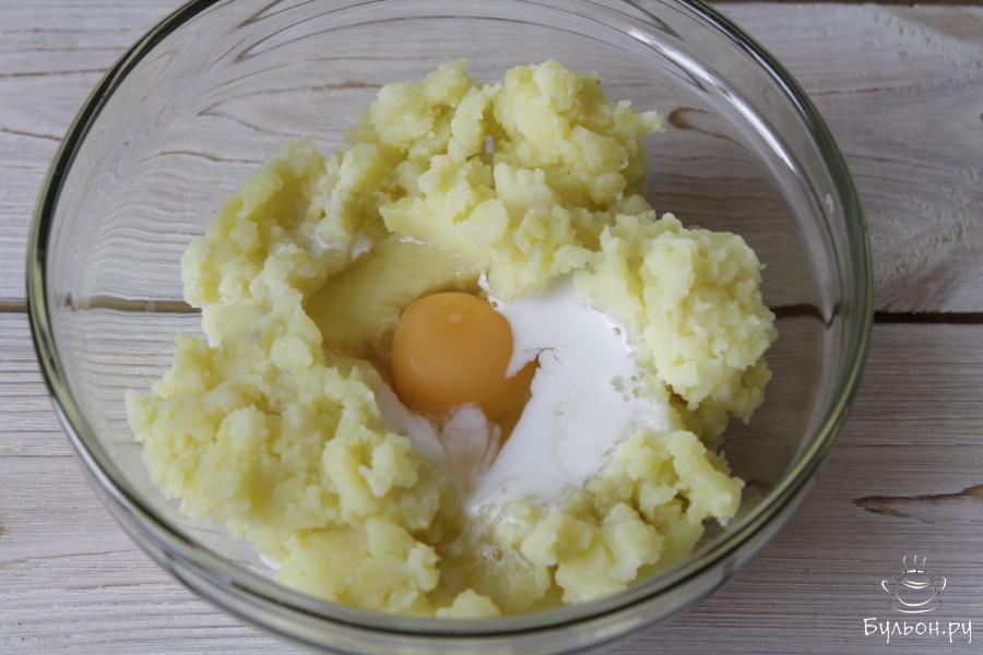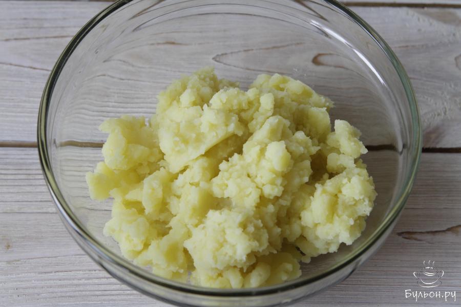 1. Клубни картофеля почистить, отварить в слегка подсоленной воде до готовности. Слить воду и размять картофель. Пюре остудить.
