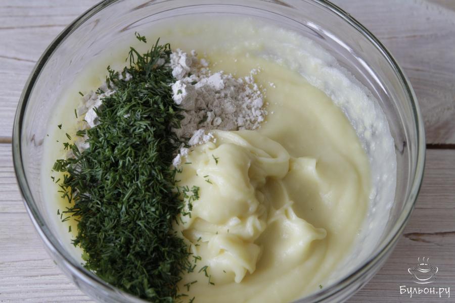 3. Картофельное тесто получится жидким. Добавить муку (в рецепте указано 2 столовые ложки, смотрите по консистенции теста, оно должно хорошо держать форму. Возможно вам потребуется чуть больше муки)