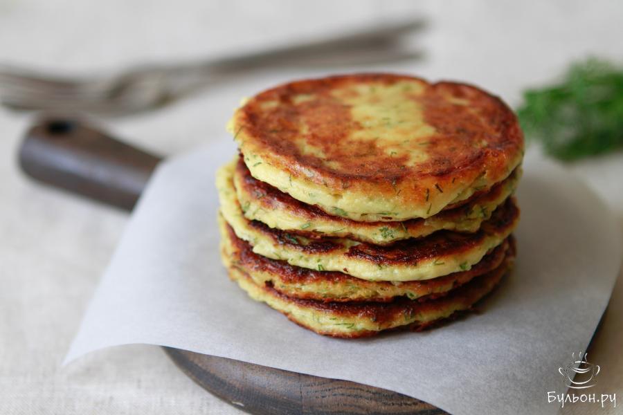 Картофельные оладьи можно рассмотреть как вариант вкусного и сытного завтрака или например ужина. Оладьи получаются очень нежными и вкусными. Подавать их лучше всего со сметаной или пряным томатным соусом. За основу берется картофельное пюре, которое желательно приготовить заранее. Картофель можно отварить с вечера, а на утро приготовить уже оладьи. Тесто на оладьи замешивается с небольшим количеством муки, чтобы оно не поплыло и хорошо держало форму. Для аромата и вкуса рекомендую еще добавить в него свежую зелень.