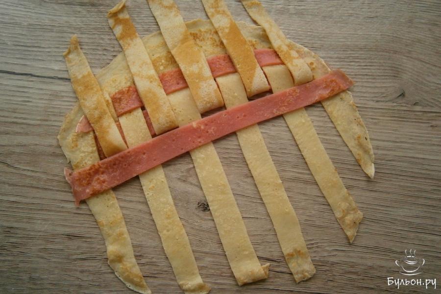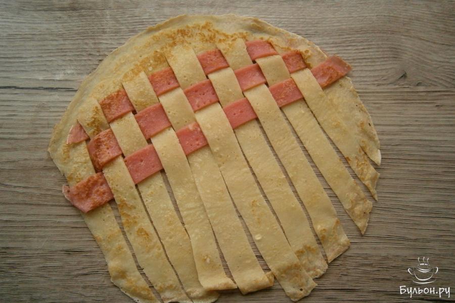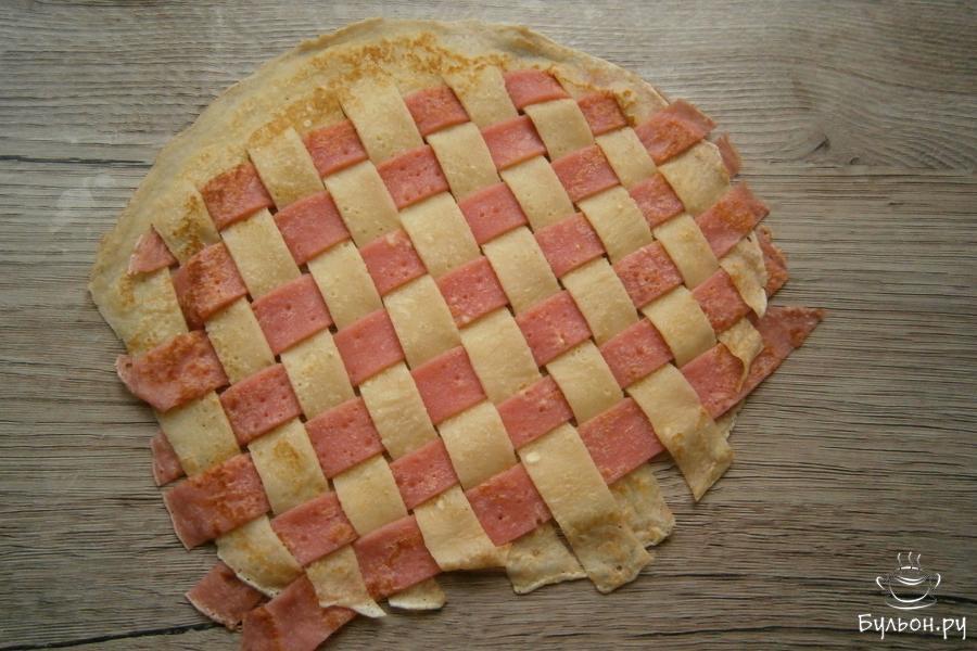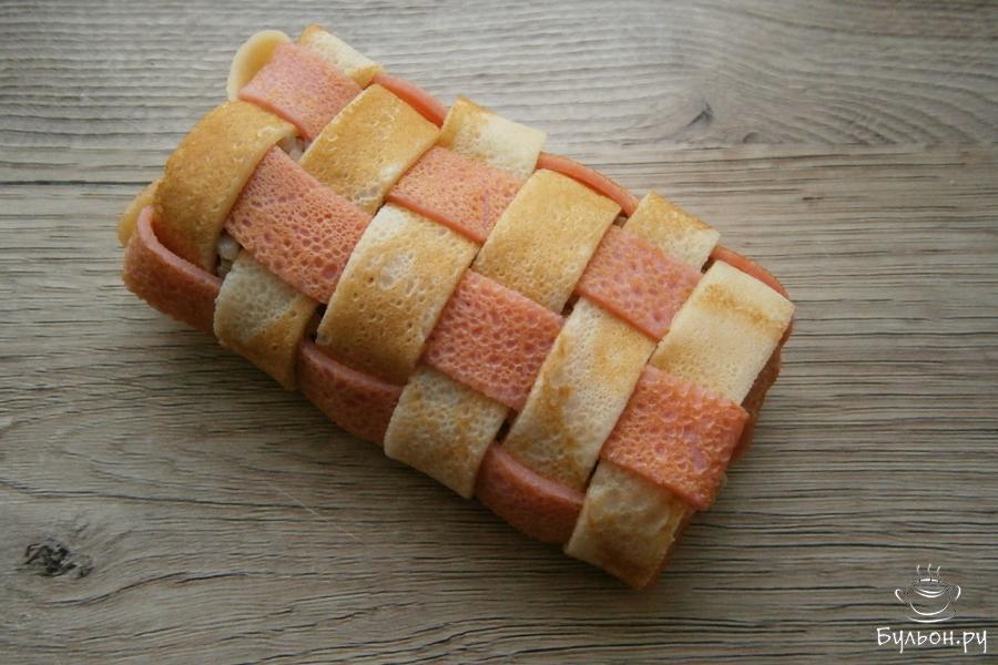 20. Также, сплести и начинить все блины. Подать плетеные блинчики с начинкой к столу со сметаной или любимым соусом. Приятного аппетита.