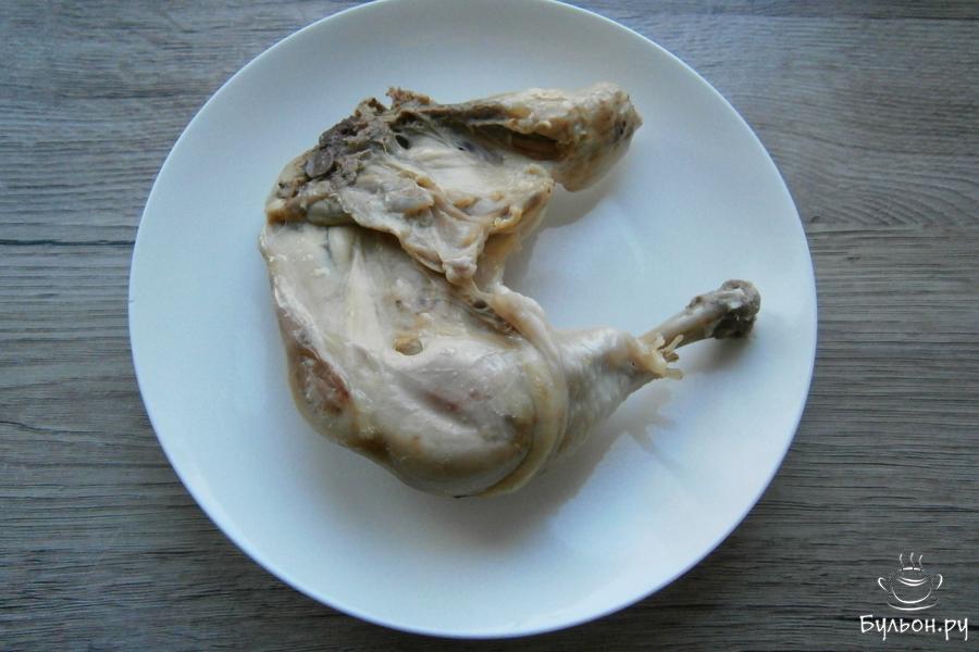 5. Гречку предварительно отварить, согласно инструкции, обычно - 1:2 с водой. Сваренную кашу добавить к курице, все перемешать.