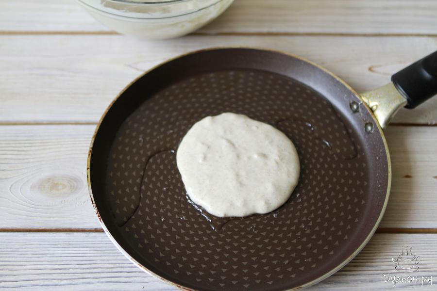 5. Как только тесто будет готово сразу приступить к выпечке. Выпекают оладьи на хорошо разогретой сковороде с небольшим добавлением растительного масла.