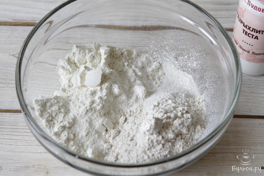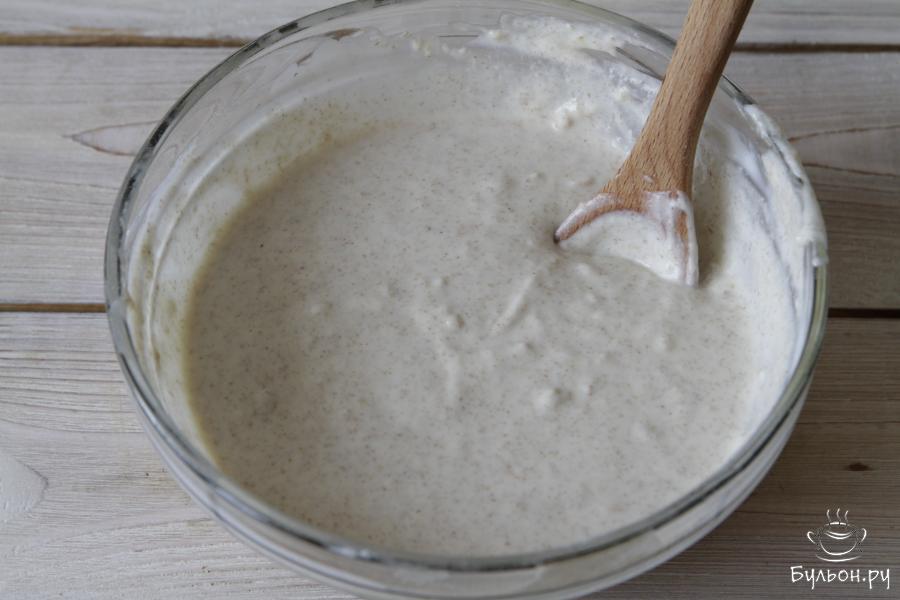 2. Венчиком хорошо перемешать все сухие ингредиенты между собой. А затем добавить к ним одно яйцо и ряженку.