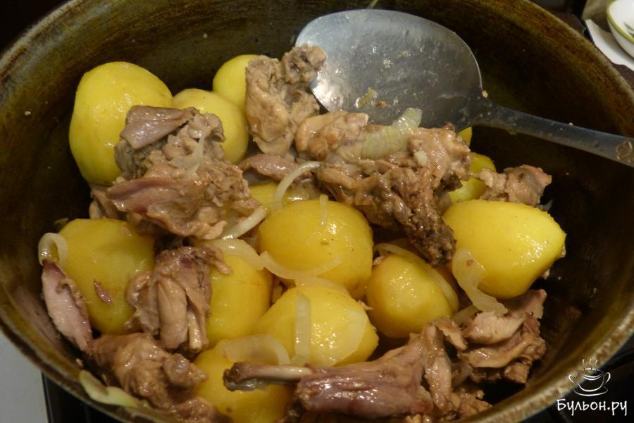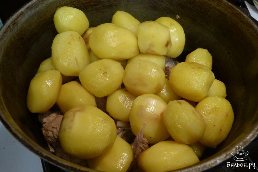 8. Готовое мясо вместе с картофелем выложить в сервировочное блюдо. Подать на стол можно в нем, в этом случае каждый себе сам кладет нужную ему порцию.