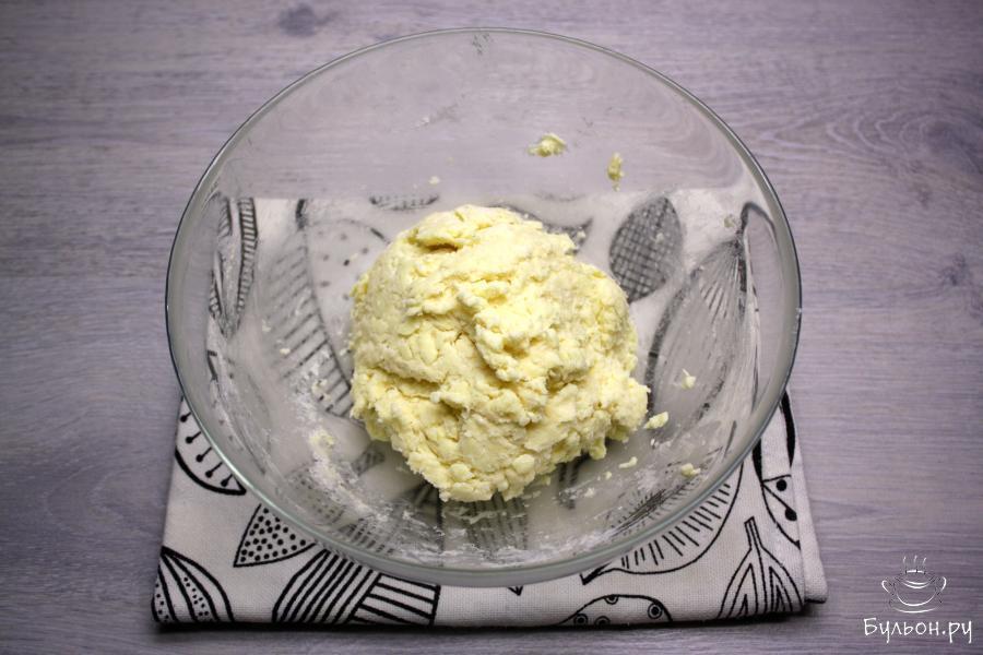 2. Замороженное сливочное масло натереть на терке. Ножом, не руками, смешать с мукой. Получится мелкая крошка.