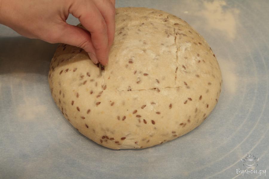 12. Заранее разогреть духовку и камень для выпечки при 250 гр не меньше часа. Перед тем как отправить хлеб в духовку сделать на нем надрезы.