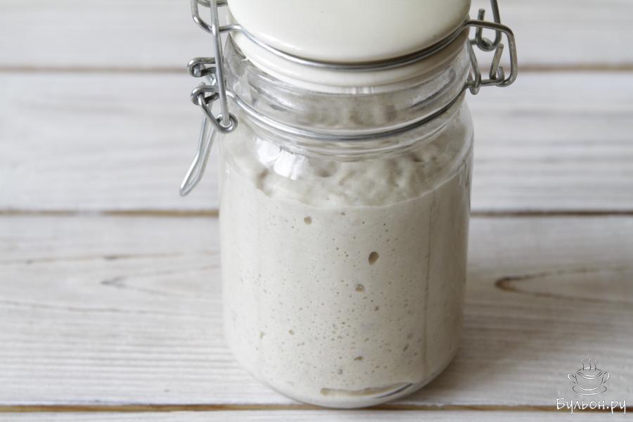 1. Подготовить закваску. Если закваска у вас находилась в холодильнике, ее необходимо достать заранее и покормить по той схеме по которой вы обычно ее кормите.