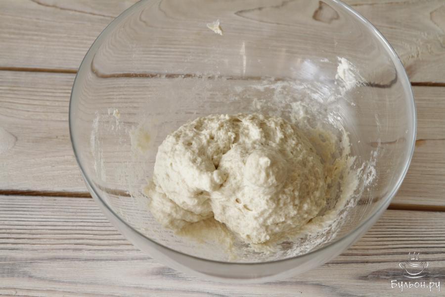 8. Тесто получится мягким и липким. Аккуратно сформировать шар и переложить его в чашу смазанную растительным маслом.