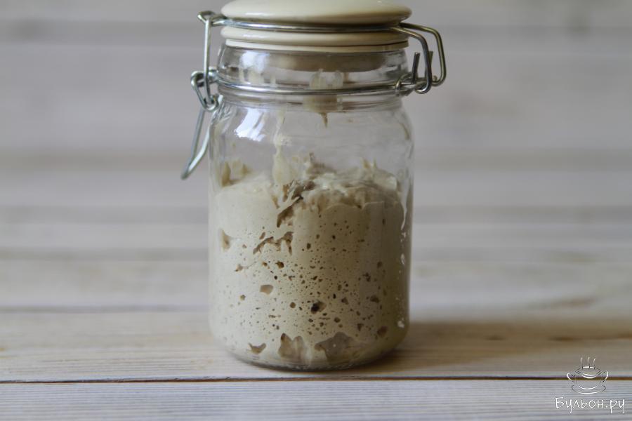 1. Для приготовления хлеба необходимо заранее вывести ржаную или пшеничную закваску. Готовую закваску хранят в холодильнике, но перед выпечкой ее нужно будет оживить. Либо же при комнатной температуре, но в этом случае закваску необходимо кормить каждый день.