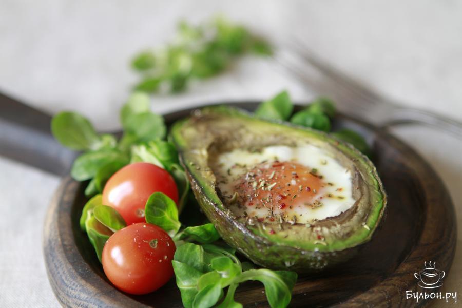В качестве оригинального и праздничного завтрака можно приготовить авокадо с яйцом. Блюдо получается полезным и сытным. Основными ингредиентами его является авокадо и яйцо. Но при желании можно в лодочки авокадо добавить и другие ингредиенты, например сыр или креветки, а куриные яйца заменить на перепелиные. Подают его самостоятельно. Украсить блюдо можно свежей зеленью. Не откладывайте приготовление этого завтрака на потом, пробуйте его скорее.