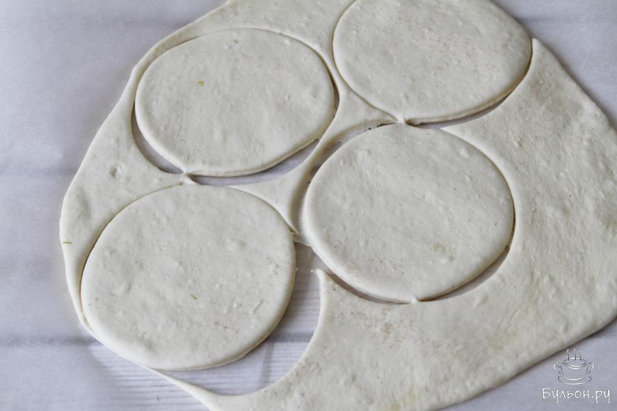 3. При помощи кулинарных форм вырубить заготовки диаметром 6-8 см ( размер пирожков может быть и больше).