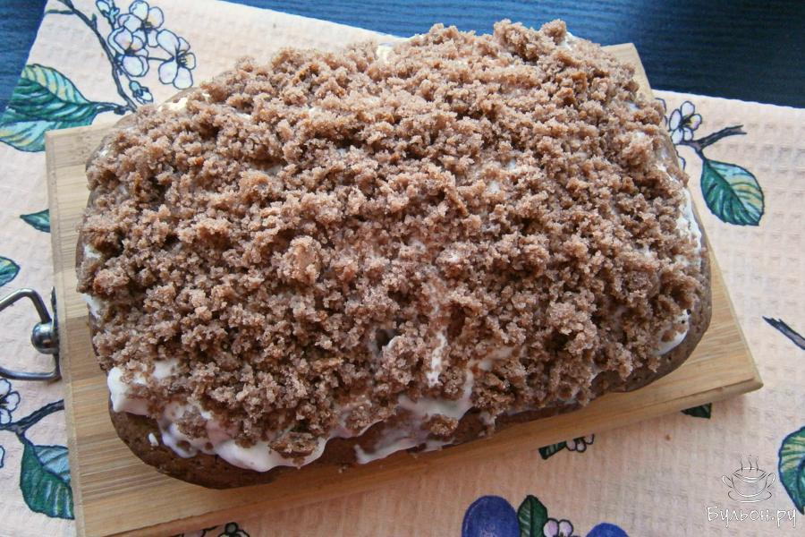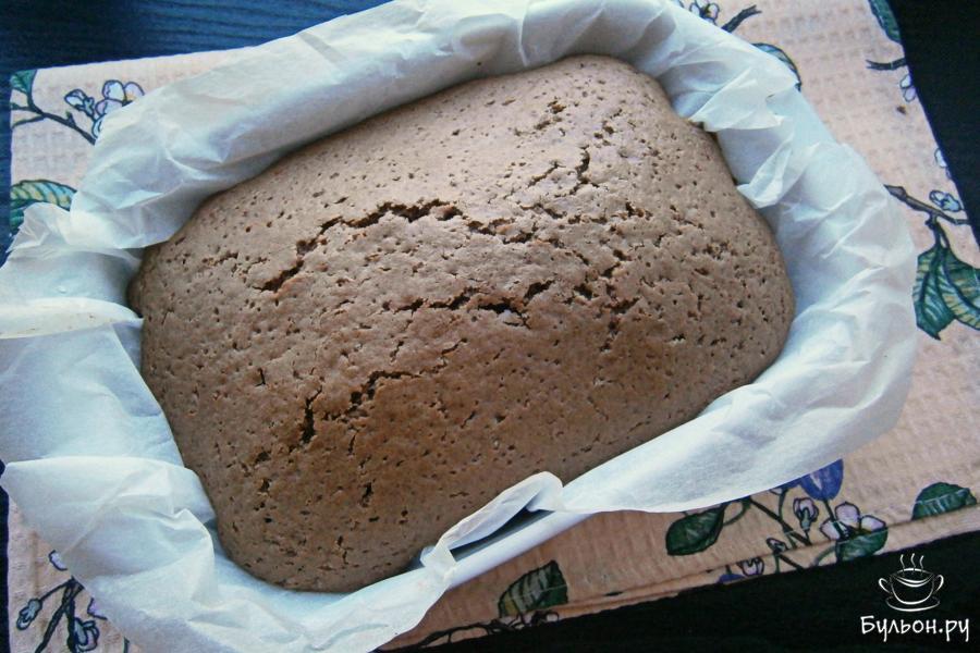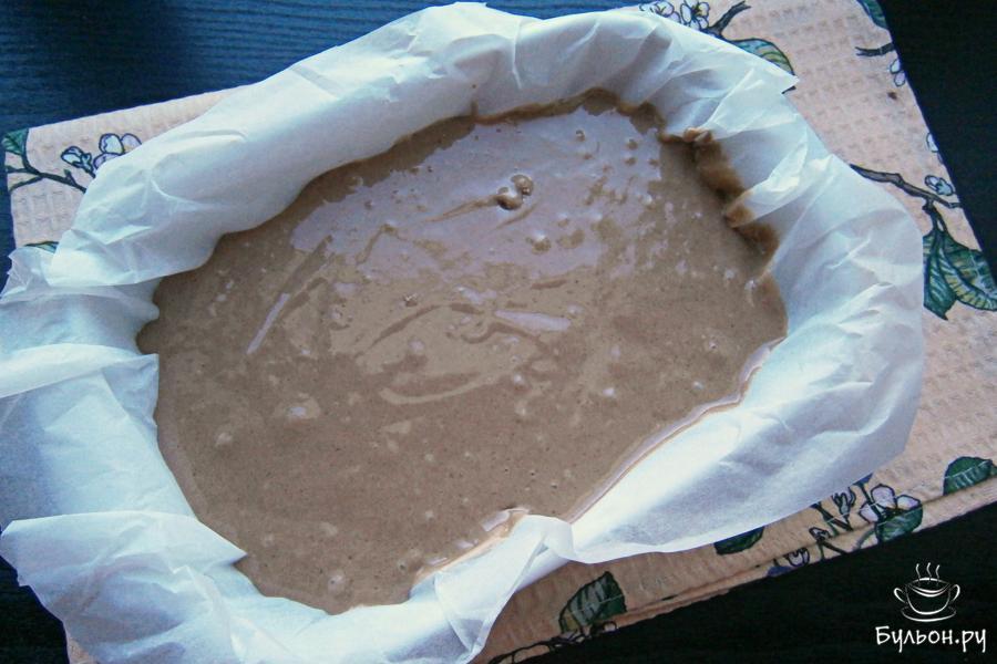 8. Отправить пирог в горячую духовку и выпекать его около 40 мин. Готовый пирог полностью остудить и вынуть из формы, освободив его от пергамента.