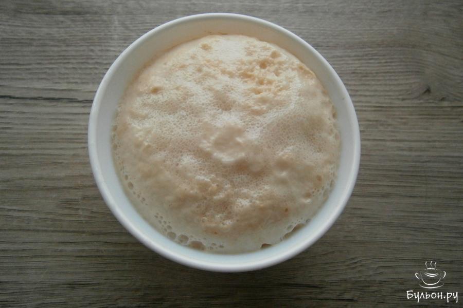 2. Если дрожжи хорошие, то они начнут работать и дрожжевая смесь станет воздушной, с характерной шапочкой.