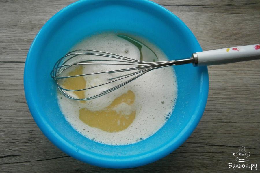 5. Добавить растопленное и немного остывшее сливочное масло, а также, растительное масло, все перемешать.